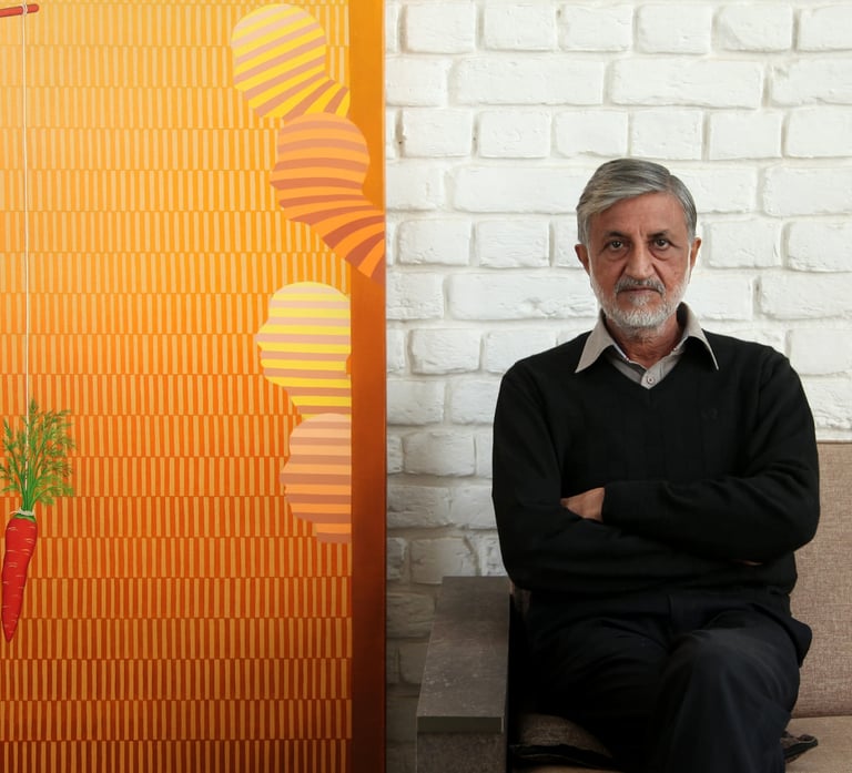 Viren Tanwar, who was born in Hissar in 1952, completed his studies at the Government College of Art in Chandigarh, where he obtained a diploma in painting. He then went on to study at the Slade School of Art in London with funding from the British Council. Before deciding to paint full-time, he taught art at a fashion design university and took on other tasks and employment. His picture features elements of today’s life, such as harshness and joys, complexity and naivete, in a style depiction that plays with shape, colour, and light and shade. His vividly coloured canvases also have an air of commitment to them. The hashiya, or borders, of Viren’s paintings bear impressions of Ajanta murals and Pahari miniatures in addition to recollections of his rural Haryanavi upbringing, when his family practiced fabric dying and printing processes known as Lahariyas and Bandhej.